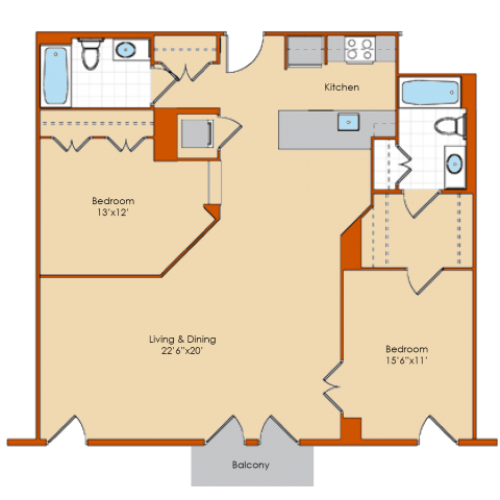 It has 2 bathrooms.