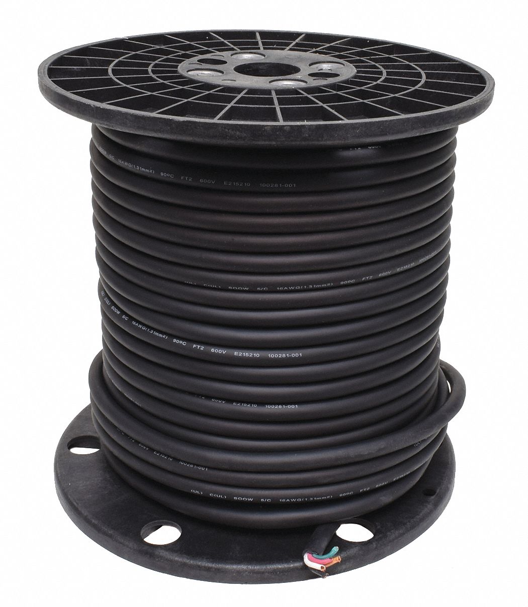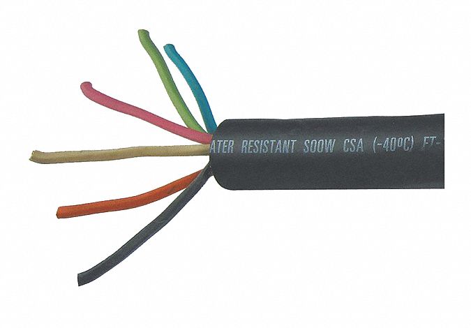 Soow 16 5 is composed of 5 bare copper conductors with a 26 30 stranding an ethylene propylene diene monomer rubber epdm insulation and a chlorinated polyethylene cpe jacket.