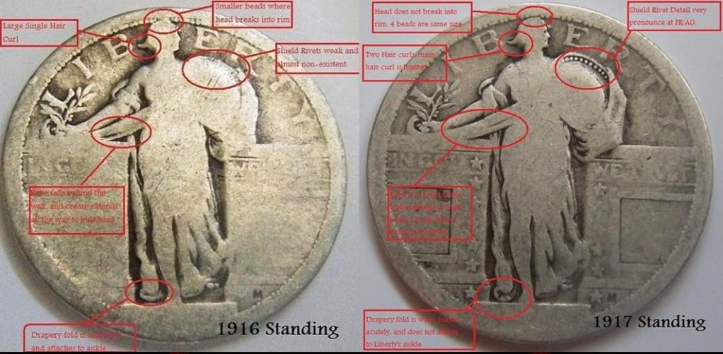Although the date is worn it is still possible to differentiate between the 1916 and 1917 type one quarters with no date.