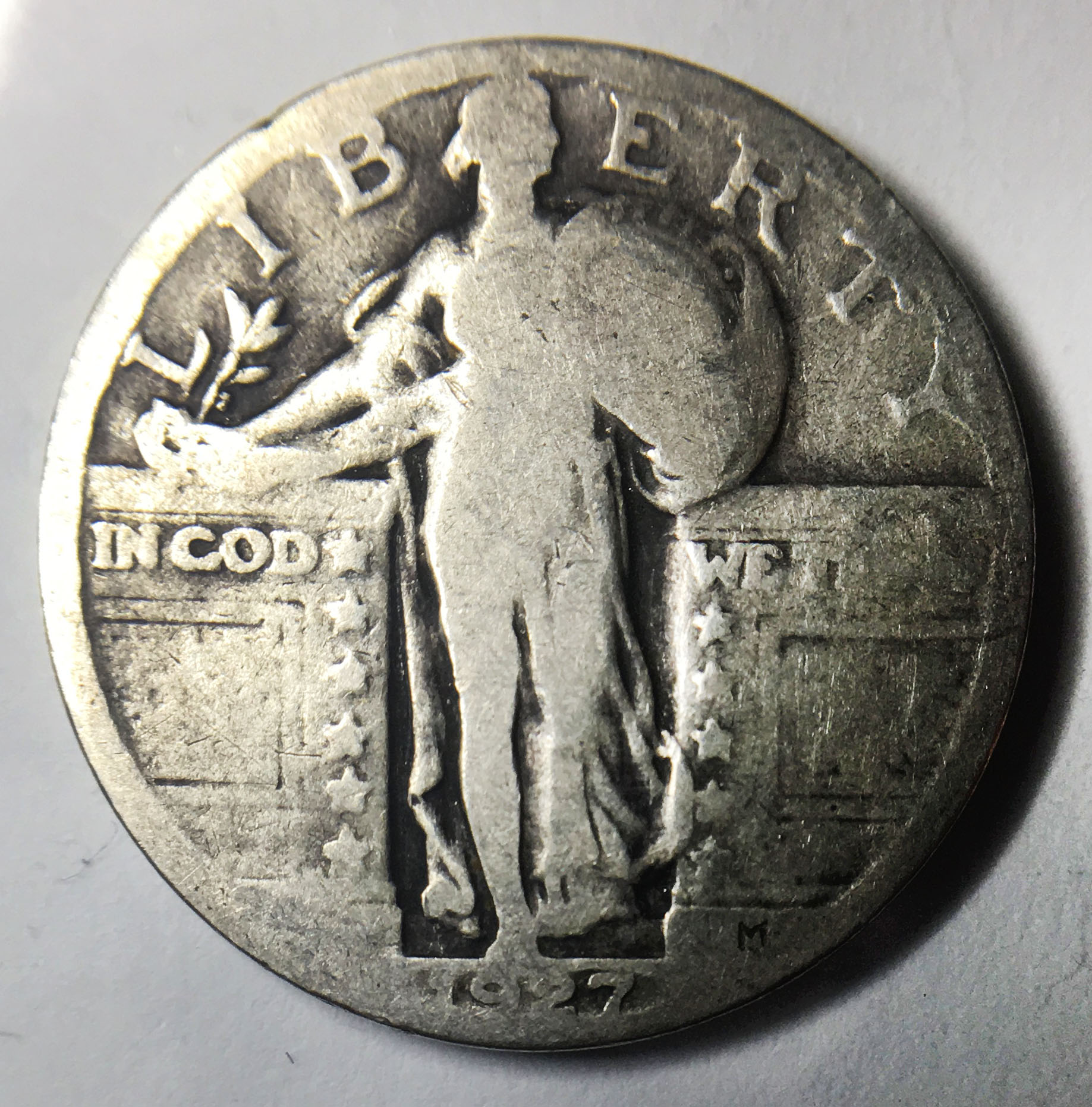 1927 standing liberty quarter mint mark location.