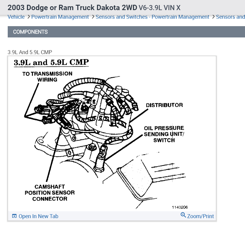 1999 dodge durango camshaft position sensor location.