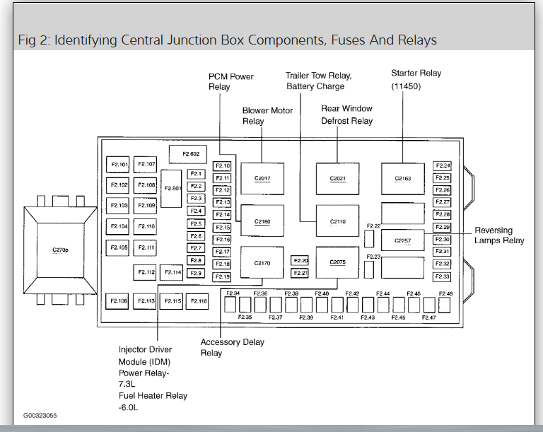 Fuse box diagram location and assignment of electrical fuses and relays for ford excursion 2000 2001 2002 2003 2004 2005.