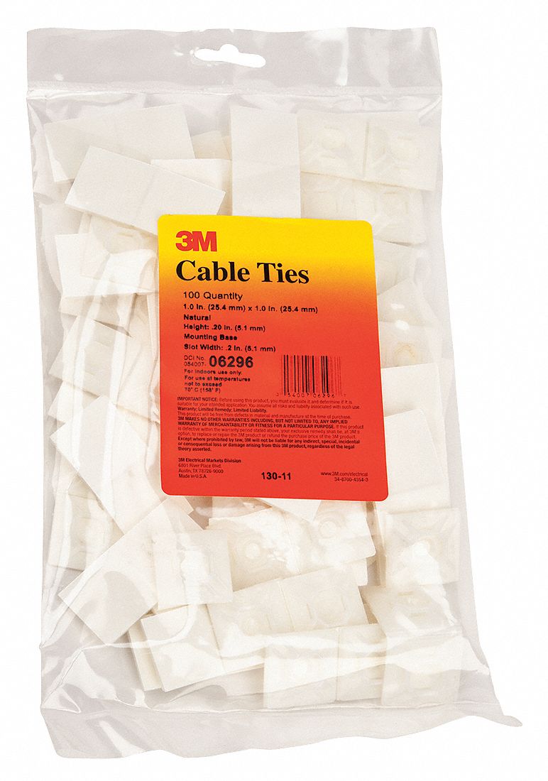 3m cable tie mounting base ctb1x1bka c black 4 way adhesive mount 500 case add to compare compare 3m cable tie base 06299 screw mount natural nylon 0 87 in x 0 62 in 100 per bag 500 case.