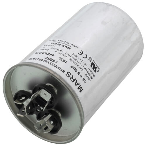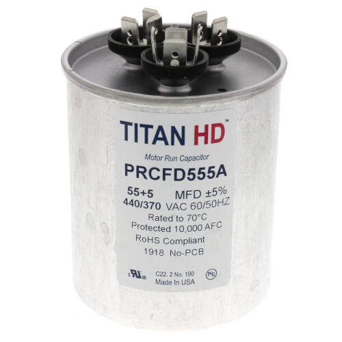 Powerwell 55 5 mfd uf micro farad 370 or 440 volt dual run round capacitor pw 55 5 r for condenser straight cool or heat pump air conditioner 55 5 guaranteed to last 5 years 4 7 out of 5 stars 266.