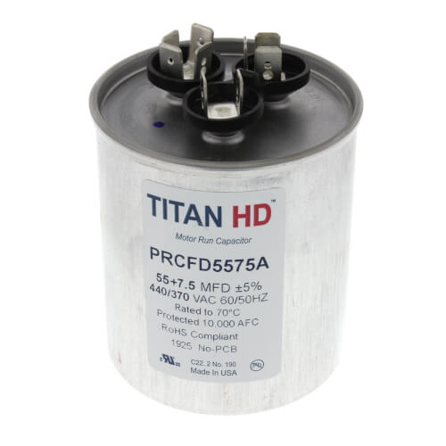 Powerwell 55 7 5 uf mfd 370 or 440 volt dual run round capacitor tp cap 55 7 5 440r condenser straight cool heat pump air conditioner guaranteed to last 5 years 4 8 out of 5 stars 125 19 off.