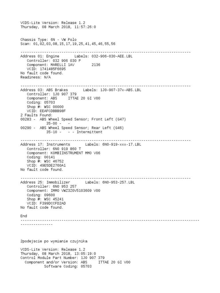 I have a abs code 00285 abs wheel speed sensor front right g45 not a plausible signal.