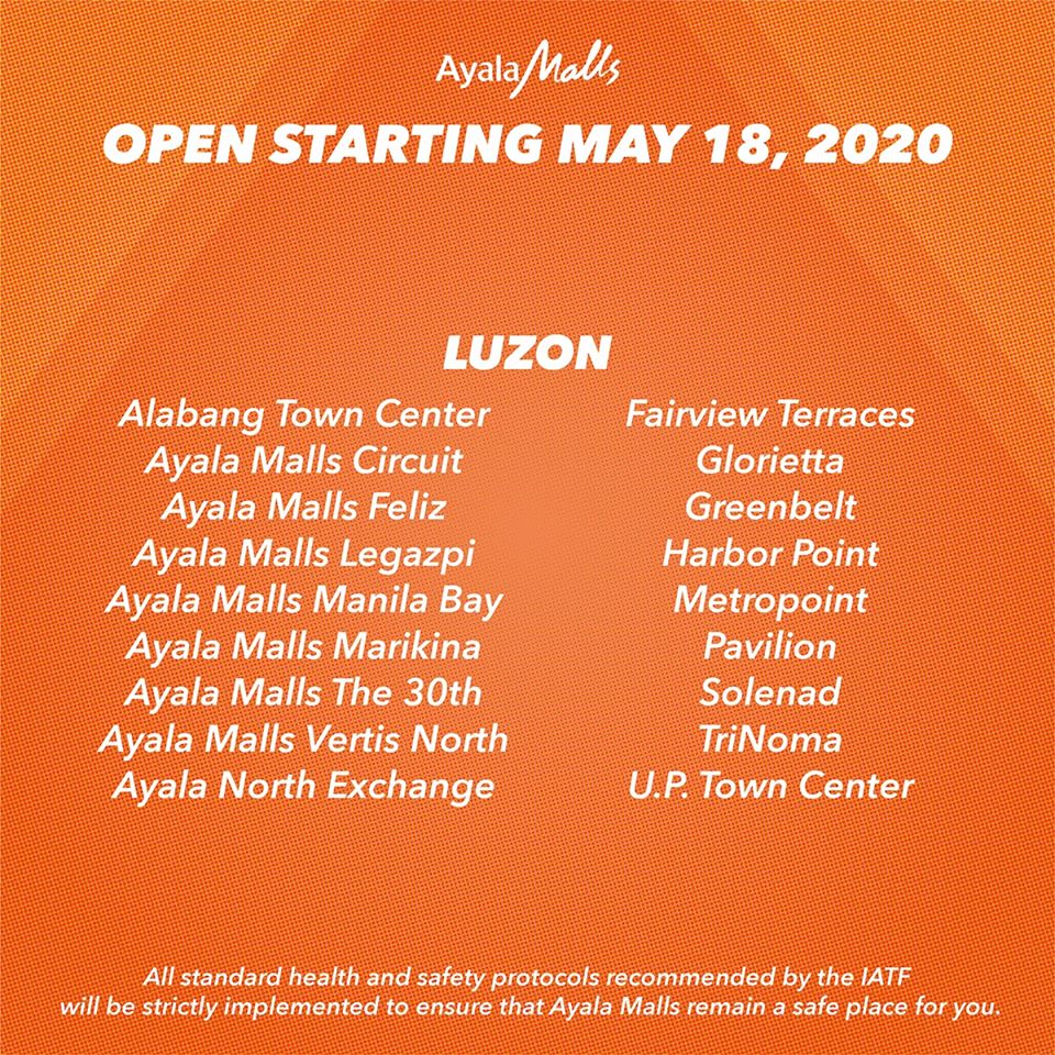 Power plant mall has also released the list of selected stores and restaurants which will be opening starting may 15.