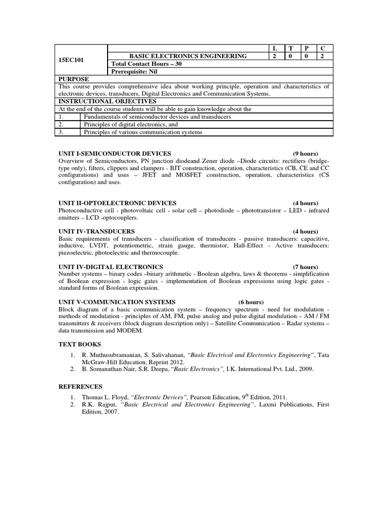 Course title basic electrical and electronics engineering me ae ce course code aee018 course structure lectures tutorials practicals credits 3 3 course coordinator mr.